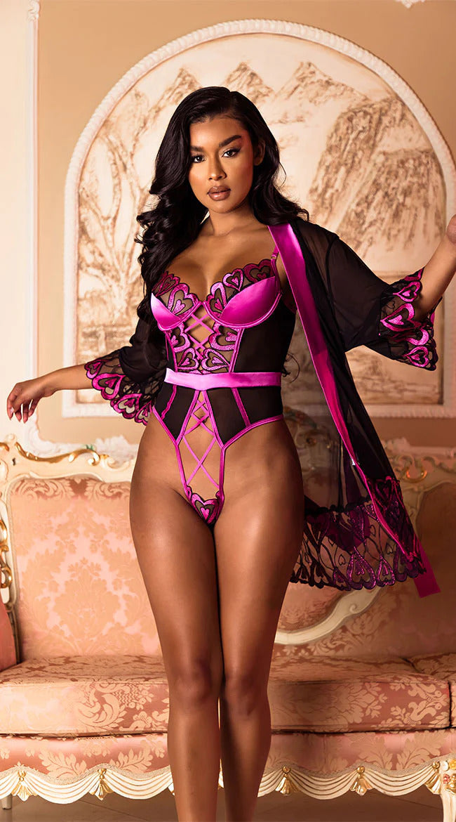 Fantezi Jartiyerli Mor Body Sabahlık Takım