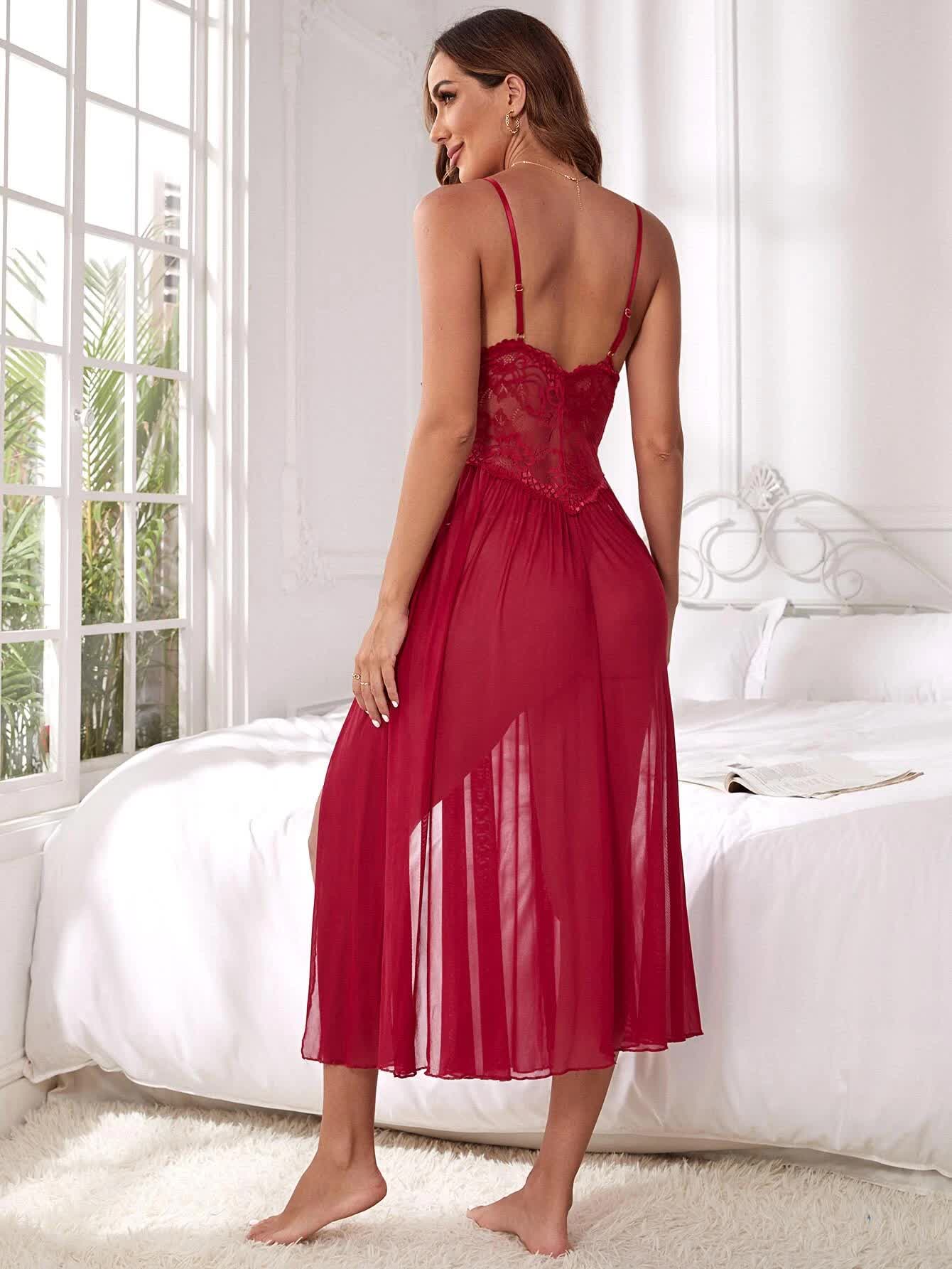 Transparan Dantelli Yırtmaçlı Elbise & Külot...